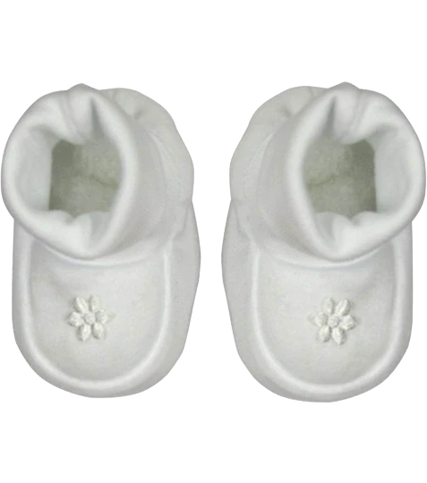 Klasické biele bavlnené papučky na krst aj na bežné nosenie vhodné ku ktorejkoľvek súprave, obleku či šatám. Vpredu sú ozdobené nášivkou. Dĺžka papučky je približne 10cm.