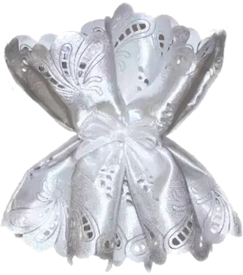 Saténová ozdoba na krstovú sviecu zdobená mašličkou a krajkovým vzorom v prevedení zdobenia v bielom, modrom alebo ružovom.